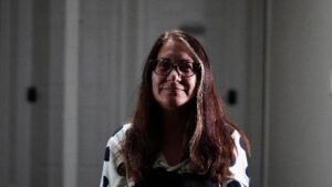 Here is a photo of a subject lit with a three-light setup. It used two L.E.D lights and a skylight as the head light.
